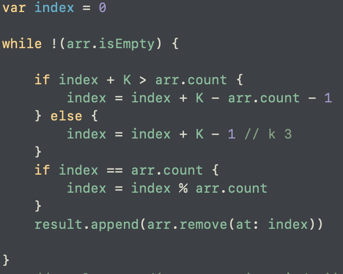 index = (index + (K - 1)) % arr.count