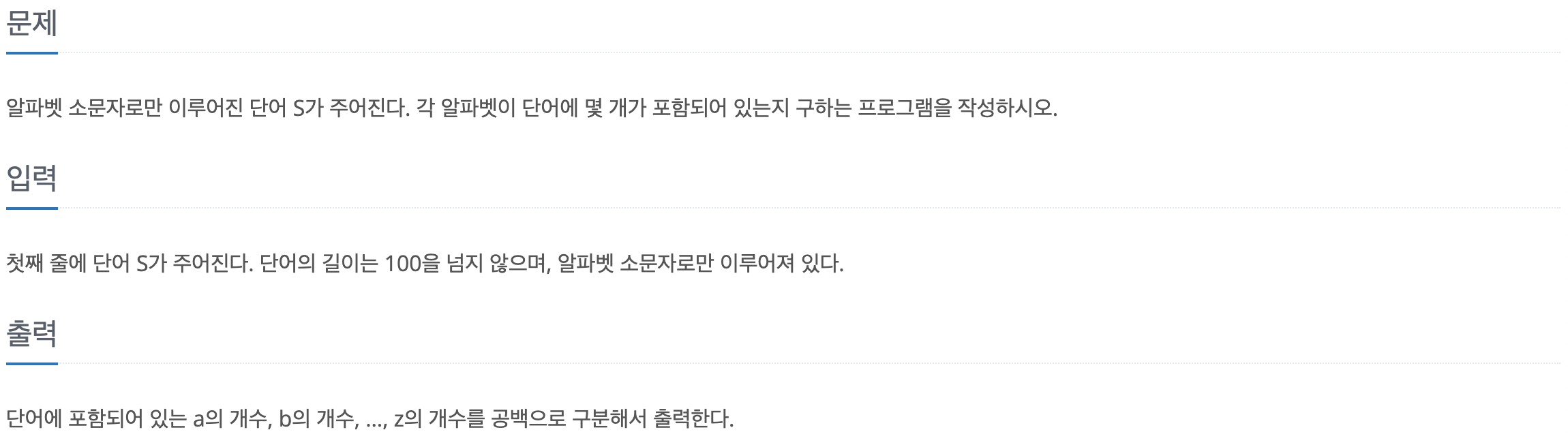 - 문자열(S)의 각 문자 개수를 출력
