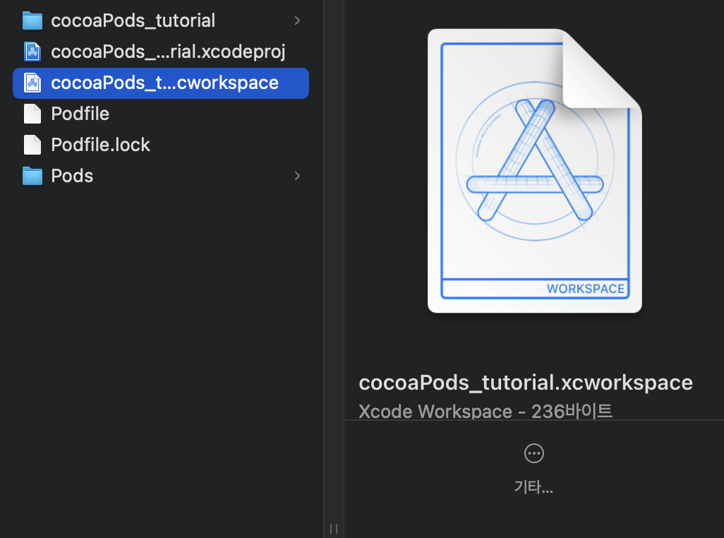 라이브러리를 사용하기 위해서는 새로 생성된 .xcworkspace에서 작업하자.