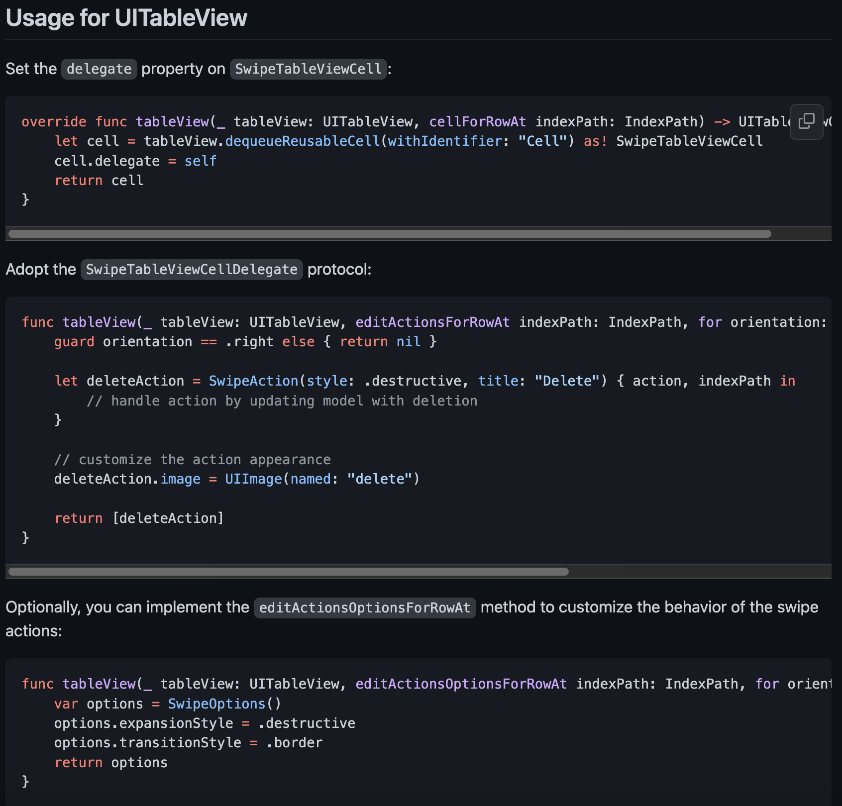 GitHub - SwipeCellKit/SwipeCellKit: Swipeable UITableViewCell/UICollectionViewCell based on the stock Mail.app, implemented in S