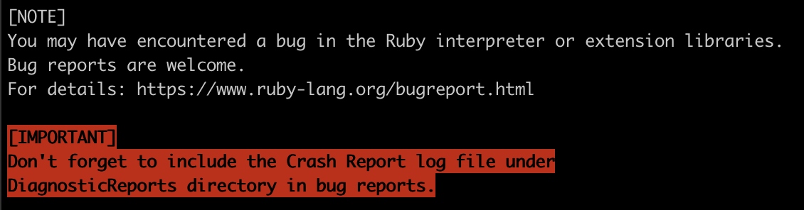 ruby -v: ruby 2.6.8p205 (2021-07-07 revision 67951) [universal.arm64e-darwin21]