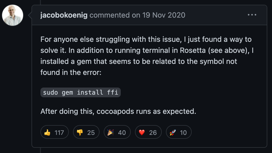 CocoaPods compatibility with Apple DTK (Apple Silicon) · Issue #9907 · CocoaPods/CocoaPods