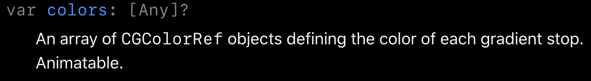 gradientLayer.colors = [UIColor.red.cgColor, UIColor.blue.cgColor]