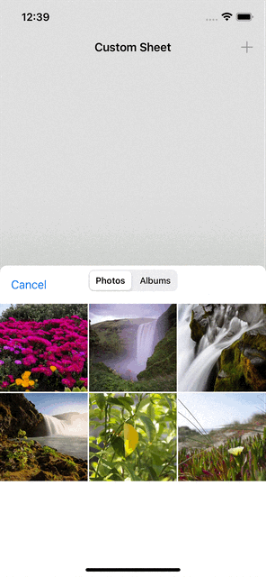(예제에서는 PHPickerViewController를 sheet로 보여주는데 다른 viewController도 물론 가능하다.)