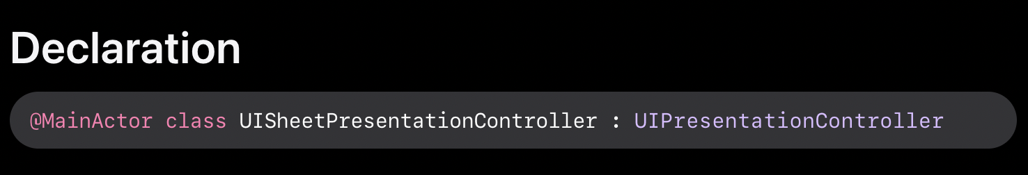 UISheetPresentationController는 UIPresentationController를 상속받고 있어 UIPresentationControllerDelegate 메서드도 사용 가능하다.