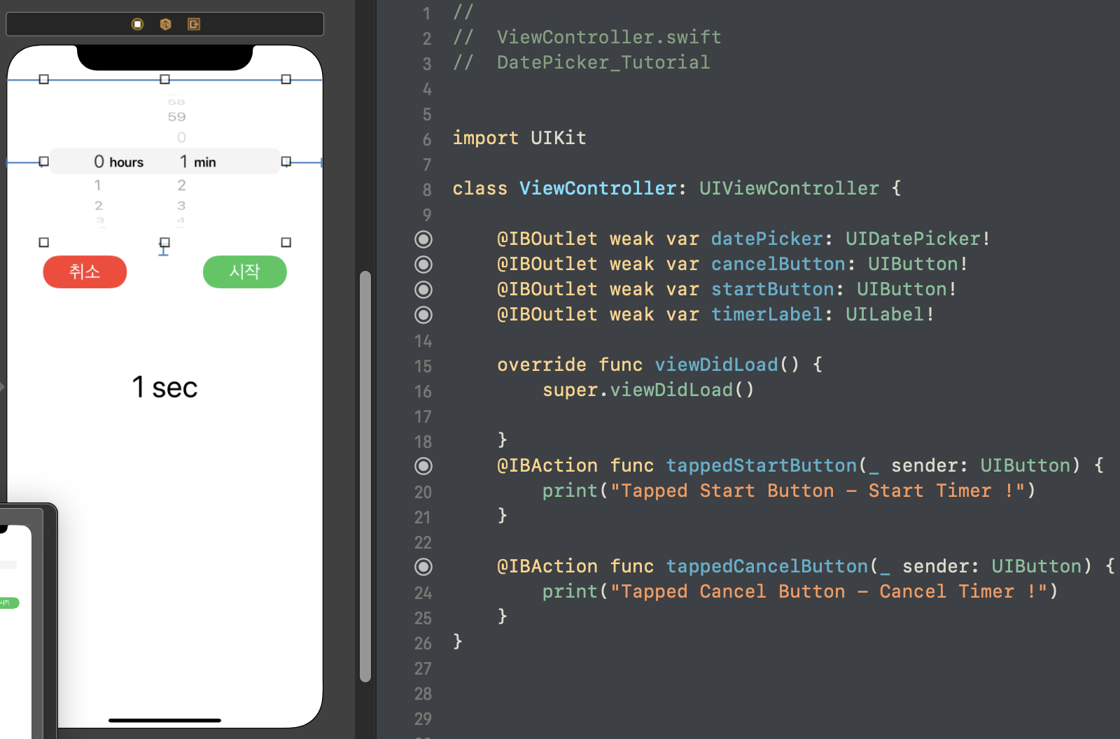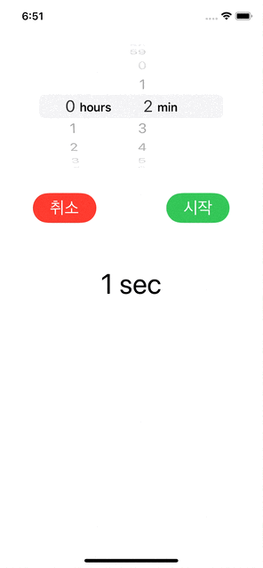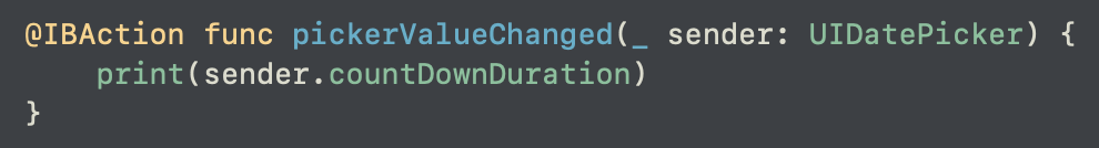 datePicker의 값이 변경될 때마다 선택한 countDownDuration(= 카운트 다운 지속시간)이 얼마인지 출력해보았다.
